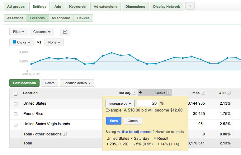 Invece di dover creare diverse campagne, è sufficiente applicare un modificatore all’offerta in base a diversi fattori. In particolare, a seconda della posizione geografica, il fuso orario o tipo di dispositivo, si può applicare un parametro tra -100% e 300%.